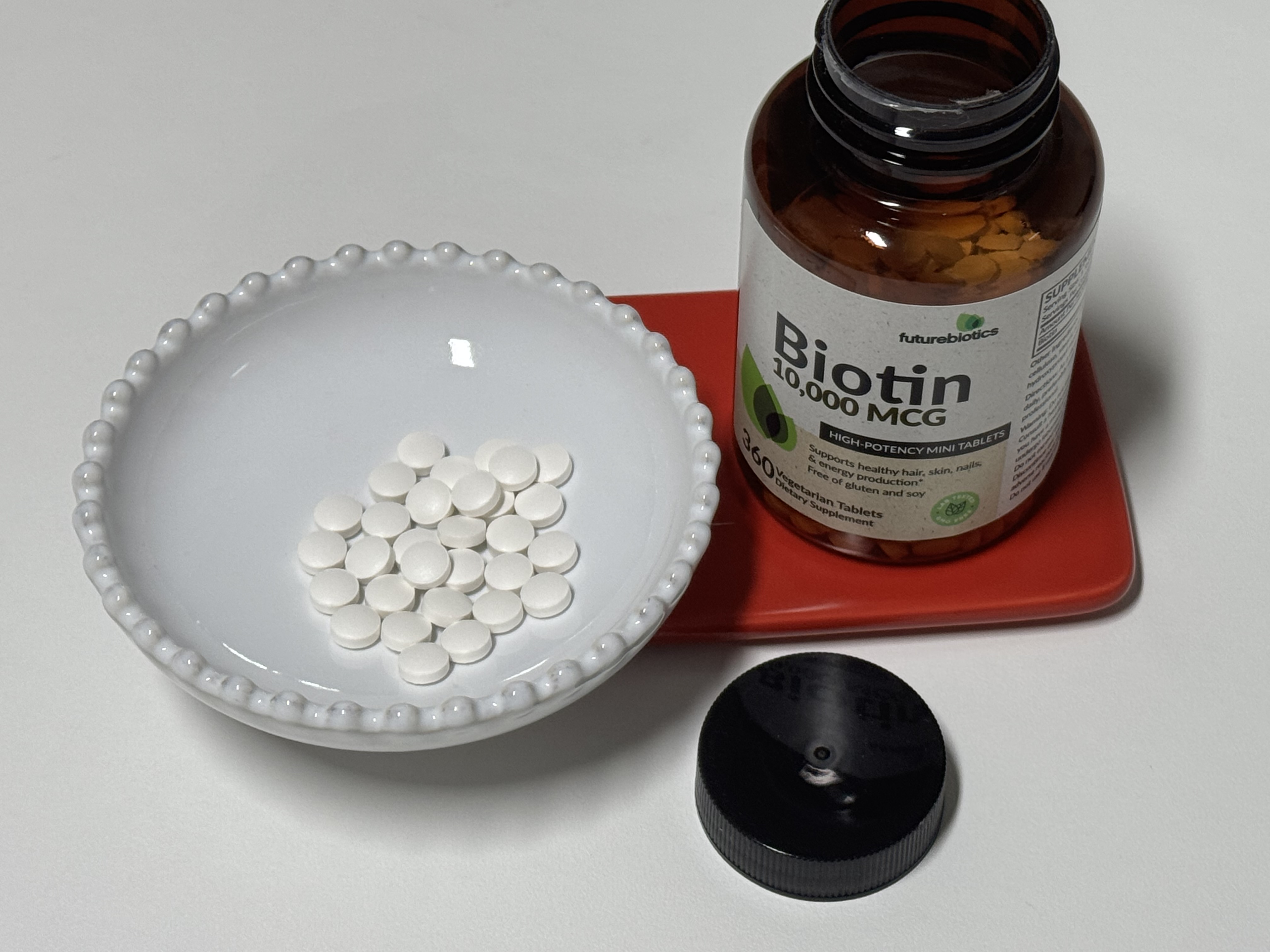 기존에 먹던 비오틴이 똑 떨어져서 아이허브 신상품으로 올라 온 퓨처 바이오틱스의 비오틴 10,000mcg를 구매해 봤습니다. 360정이 들어간 대용량이라 이거다! 싶어서 냉큼 주문했답니다. 탈모예방 혹은 손톱 발톱 건강을 위해 비오틴을 주문하시는 분들은 아마 5,000mcg와 10,000mcg 중에서 고민을 하셨을 거에요. 제 개인적인 복용 경험으로 봤을 때, 함량이 더 높은 10,000mcg가 훨씬 효과가 좋더라구요. (물론 당연한 결과겠지만 말입니다. ㅎㅎ)